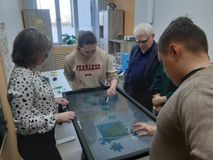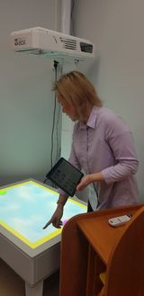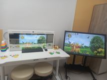 В кабинете учителя-дефектолога появилось современное интерактивное оборудование, которое помогает создать комфортную и доброжелательную атмосферу для занятий. Среди новых пособий: