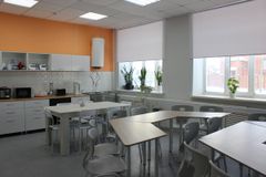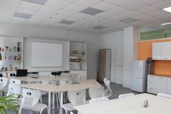 Реализация проекта"Доброшкола" позволила расширить предметную область «Технология» новым профилем «Поварское дело». Образовательная деятельность по данному профилю трудового обучения организована в новой учебной мастерской, которая представляет собой специально оборудованное и зонированное помещение для проведения теоретических и практических уроков.Неотъемлемой частью учебного кабинета являются зоны приготовления пищи и дегустации, которые представлены функциональным кухонным гарнитуром, служащим для размещения в нём кухонной и столовой посуды, столовых приборов, кухонного инвентаря, инструментов и приспособлений для готовки; обеденными столами и стульями, способными разместить всех участников образовательного процесса; современным электрооборудованием (электроплита, чайник, миксер, посудомоечная машина, микроволновая печь и др.), позволяющим быстро и качественно выполнять учебные задачи. Интерактивное оборудование учебной зоны помогает усвоениюмтеоритических знаний по предмету.